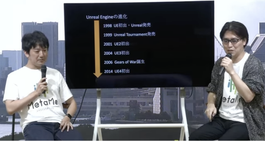 プレゼンテーションの後、株式会社Indie-us Gamesの中村氏と株式会社ヒストリアの佐々木氏による、「Unreal Engineとコミュニティ」というテーマでトークセッションが行われました。セッションでは、初版「Unreal Engine」から現在に至るまでの歴史と広がりについて議論されました。