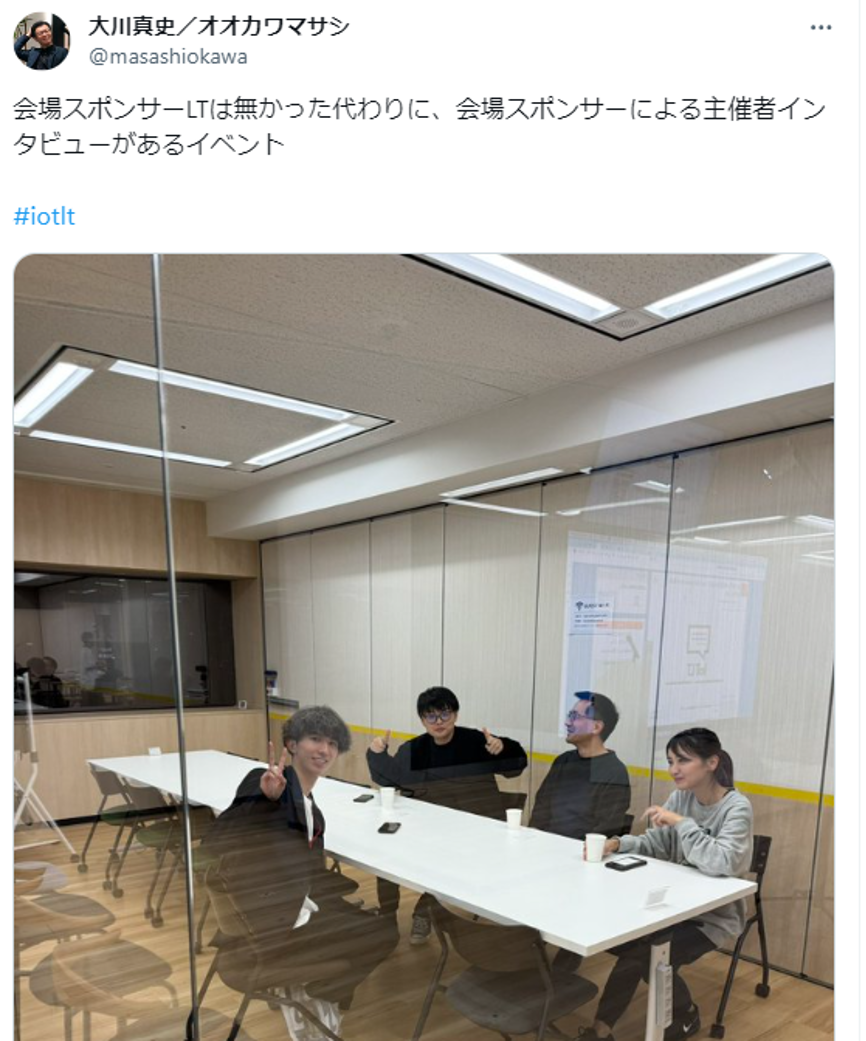 イベントはとてもシンプルで、登壇者や集まった人が話して懇親会をするというスタイルは変わっていませんね。IoT縛りと言っていますがそこまでこだわりはなく、自由に参加していただいています。