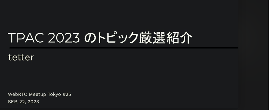 2023年9月22日に開催した「WebRTC Meetup Tokyo #25」のレポートです。