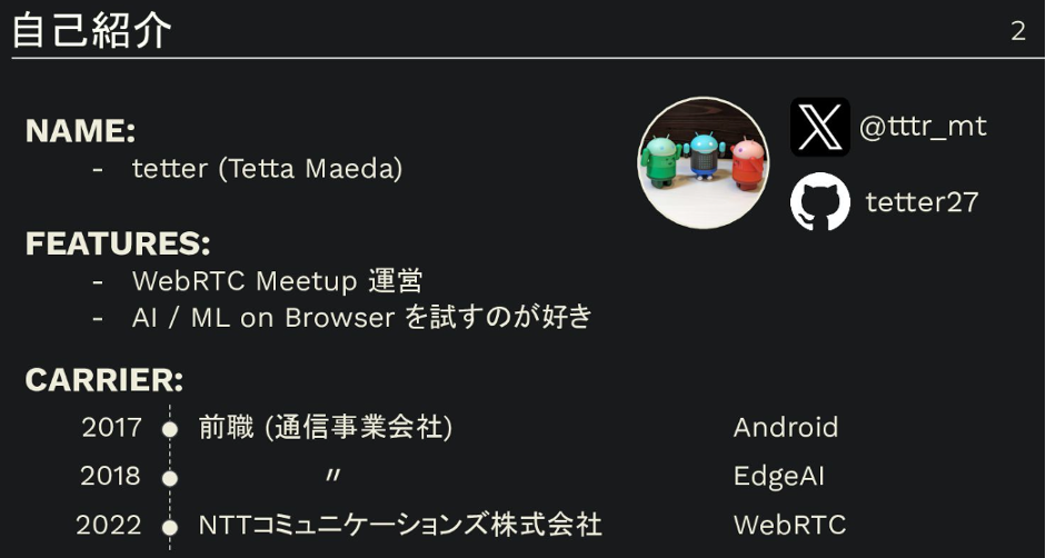 登壇者:tetter氏 (R&Dエンジニア、WebRTC Meetup運営)